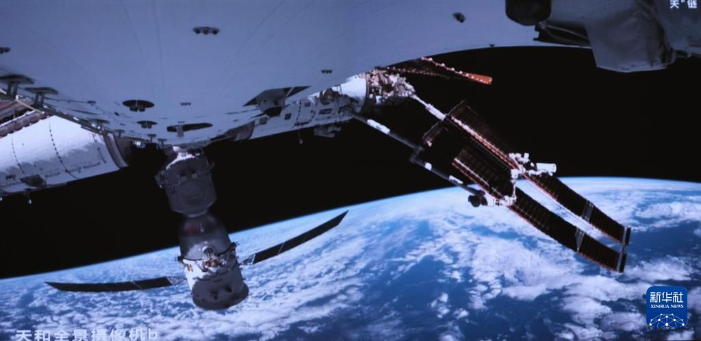 5月28日在北京航天飞行控制中心拍摄的神舟十八号航天员在空间站组合体舱外作业的画面。新华社