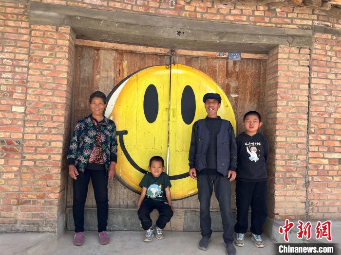 村民站在绘有“笑脸”的自家门口。