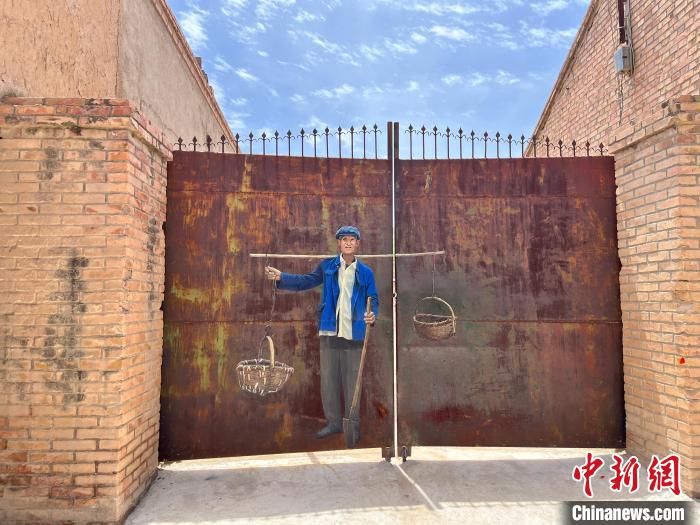 该村中一扇铁门上的彩绘。