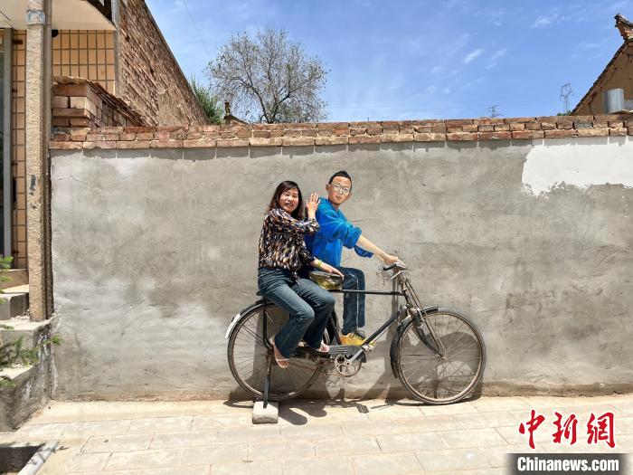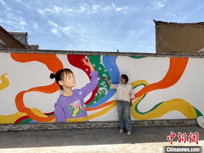 村民与墙绘合影。