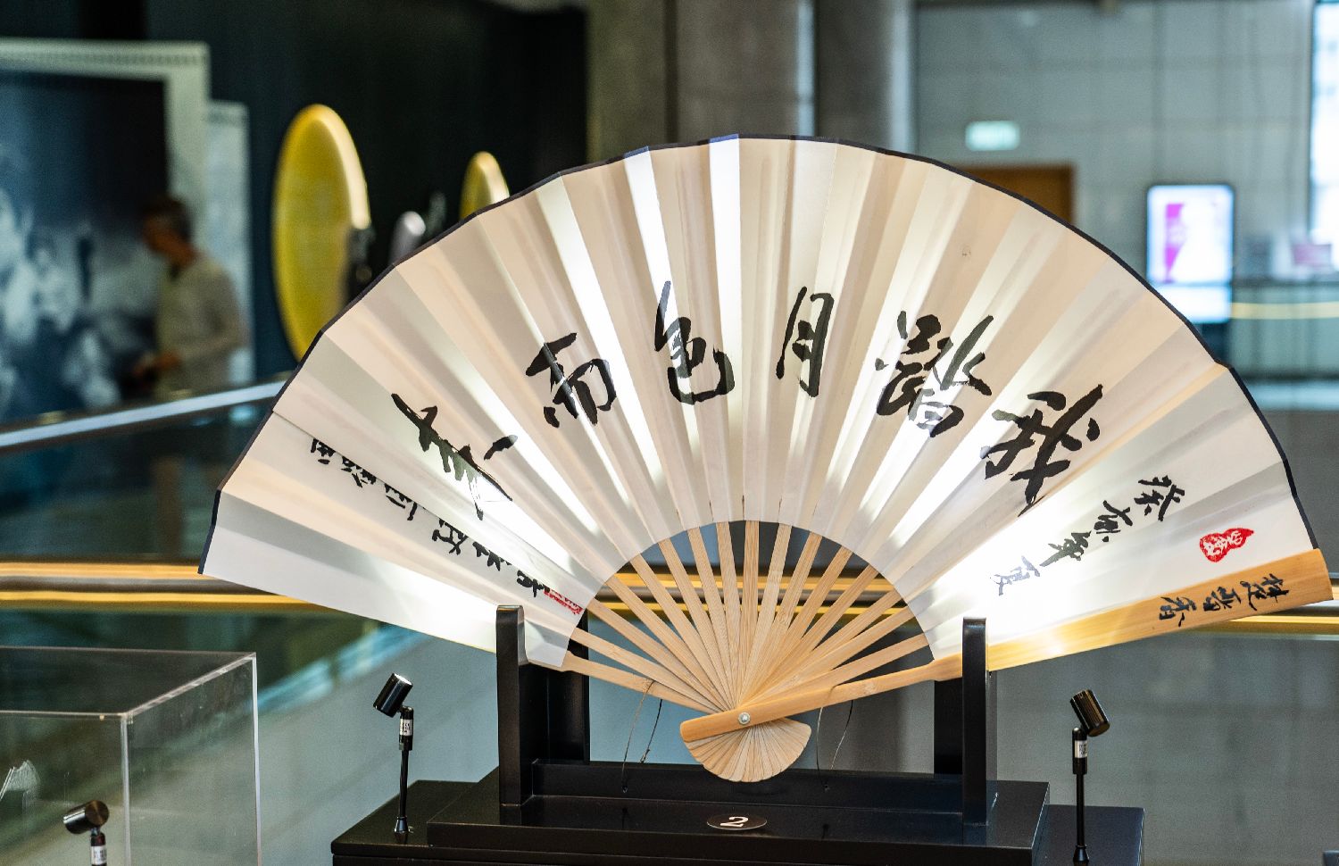 正在香港文化博物馆内展出的《文又得武又得》经典武侠剧服饰道具展览上,展出约30件香港经典电视武侠剧的头饰、服饰和道具,让观众重新体验经典,感受武侠情怀,宣扬中华文化。此次展览是“香港流行文化节2024”活动之一。图为6月3日,武侠形象“楚留香”使用的扇子道具在此展示。