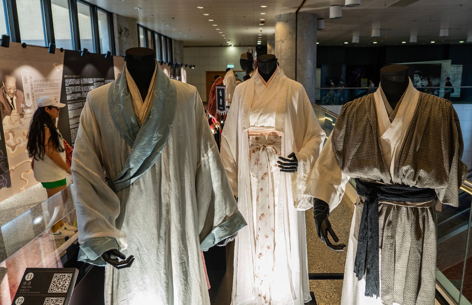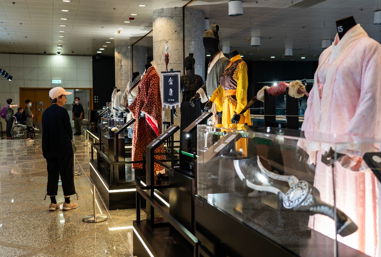 6月3日,根据金庸先生武侠小说改编的电视剧人物形象的服饰道具等在此展示。