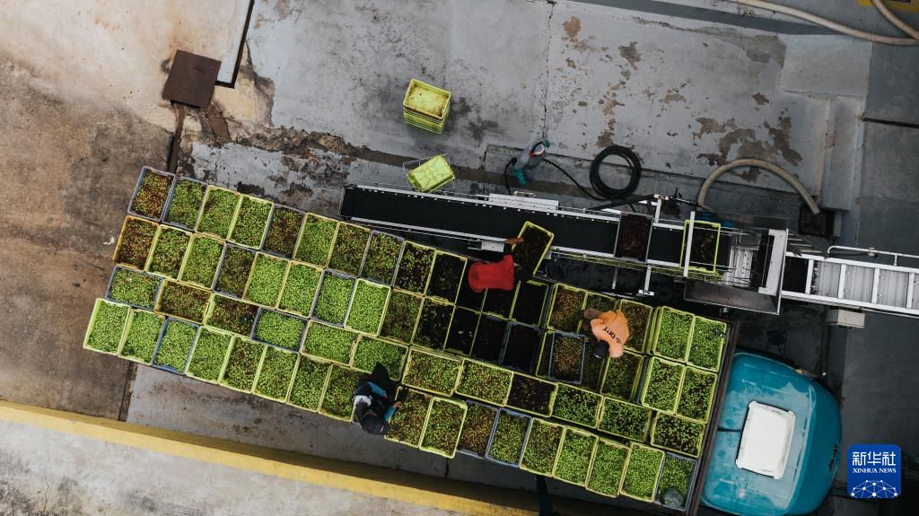 5月22日,在“新大地”酒庄,工作人员搬运采摘的葡萄(无人机照片)。