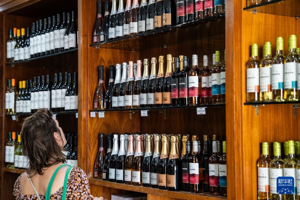 5月22日,在“新大地”酒庄,顾客观看货架上的葡萄酒。