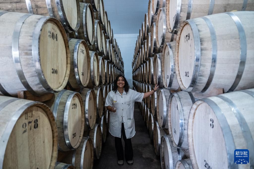 5月22日,工作人员展示“新大地”酒庄的酒窖。