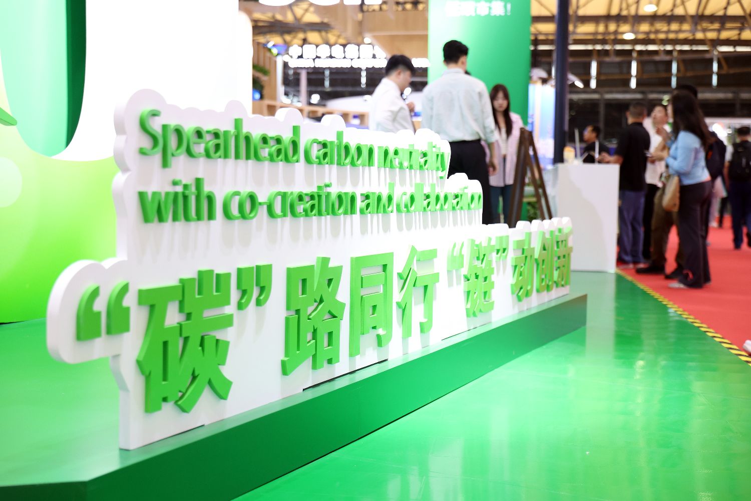 6月5日,2024上海国际碳中和技术、产品与成果博览会(“碳博会”)在上海新国际博览中心开幕。本届展会以“走向碳中和之路”为主题,吸引了来自14个国家和地区的600余家企业集中亮相,全面展示低碳领域最新进展和未来探索方向。图为展会现场。中新社