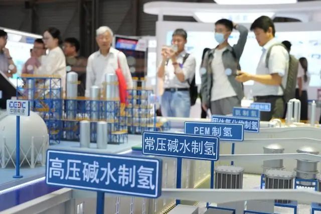 观众在中国能建展台了解氢能源的生产与应用。中国日报网