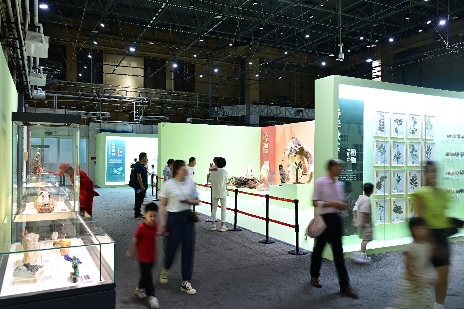 6月5日,“自然乐章——国家自然博物馆2022-2023年新增馆藏精品展”在北京开幕。展览共展出200余件极具科研与收藏价值的生物、矿物标本等精品,集中展示了中国国家自然博物馆近两年展藏品征集成果。图为家长带小朋友在国家自然博物馆观展。中新社