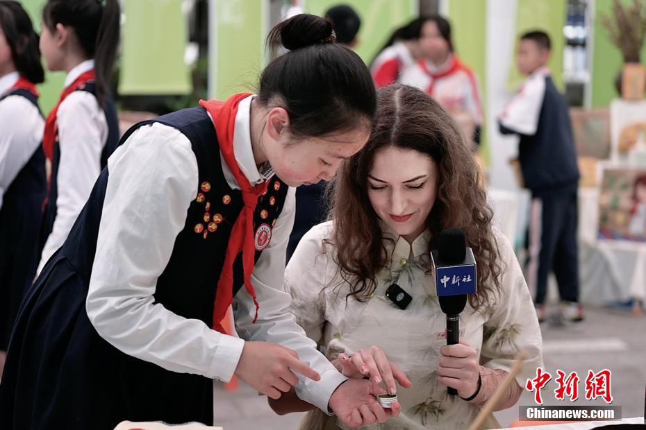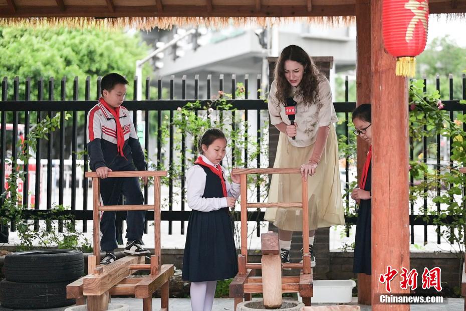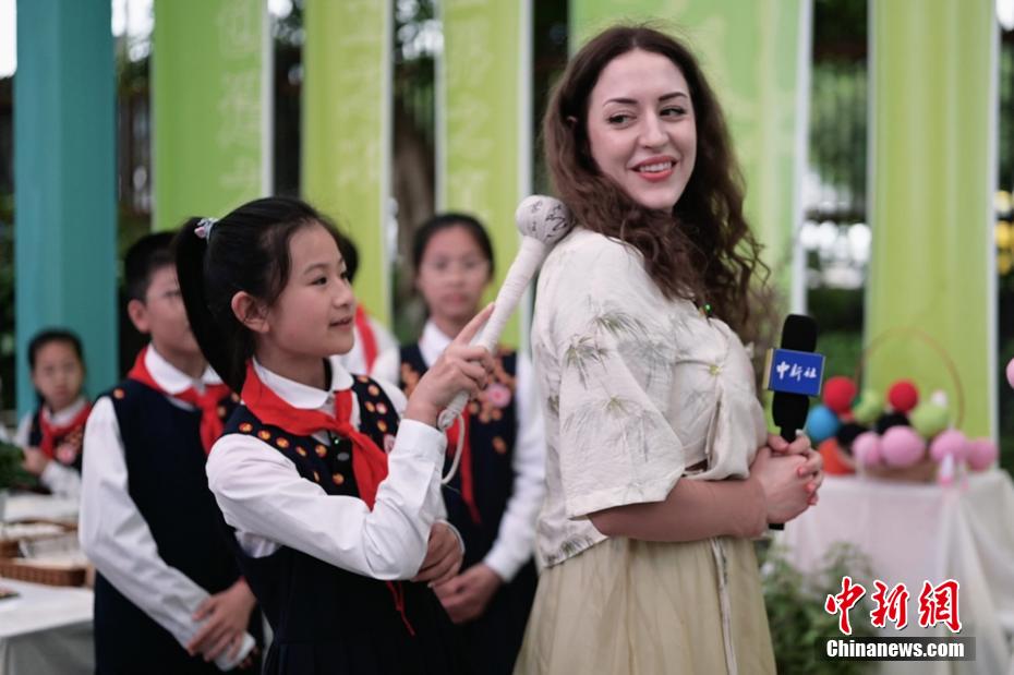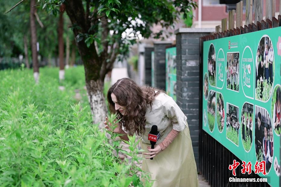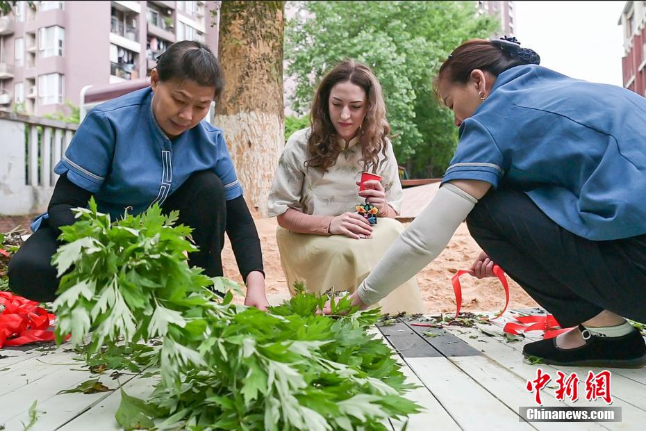 28岁的宋潇佩来自波兰,是重庆大学的一名留学生,这是她在中国度过的第一个端午节。近日,为学习端午传统文化习俗,宋潇佩特地穿上中式服装,走进重庆市艾草文化研究指导基地——两江新区嘉木小学,以艾草为媒,和孩子们一同学习“艾+”学科生活融创教育课程,感受传统文化在节日里焕发的新生机。