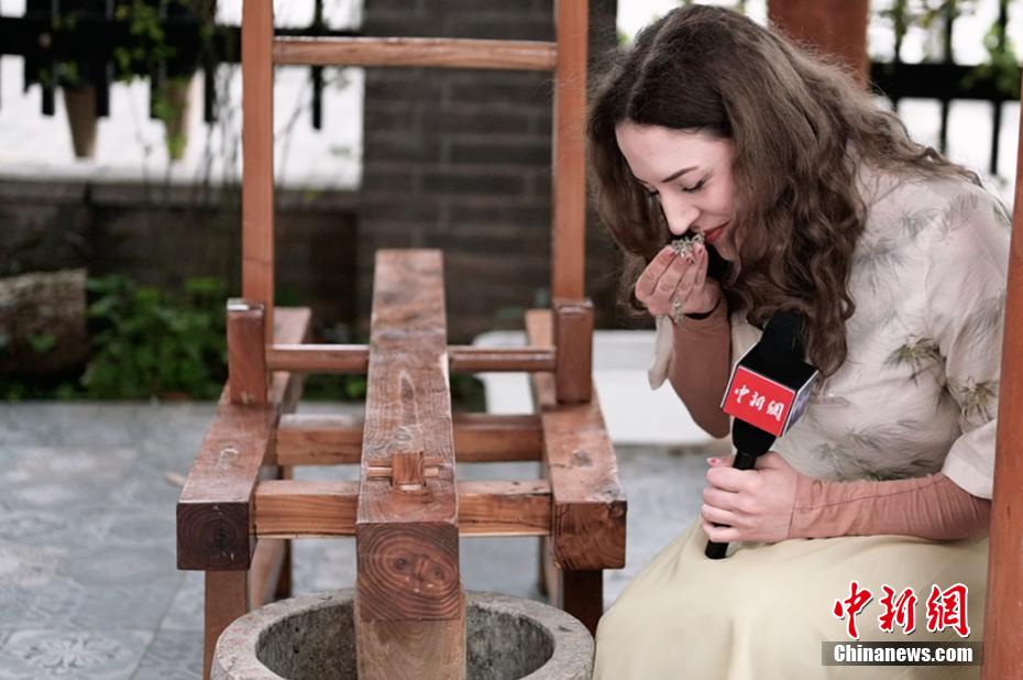 宋潇佩观看艾束制作过程。