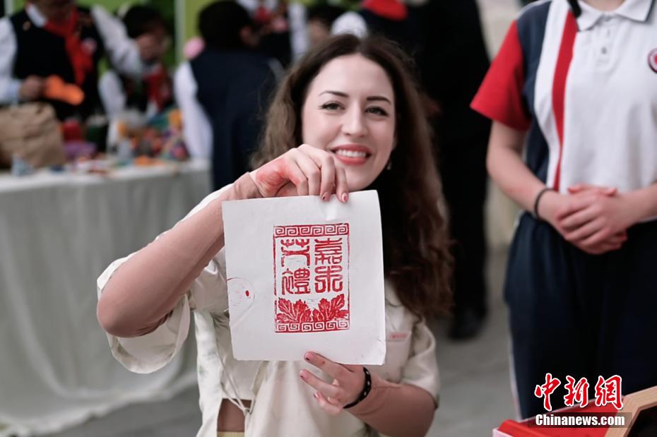 宋潇佩展示艾印章图案。