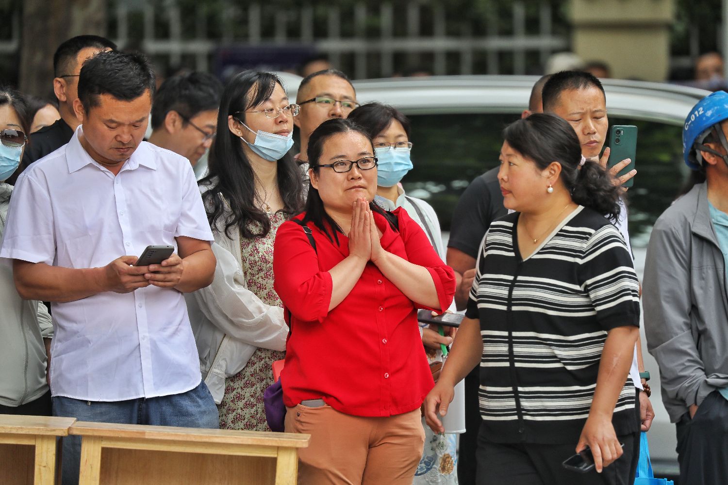 6月7日,福建福州屏东中学考点,家长在考场外等候。中新社