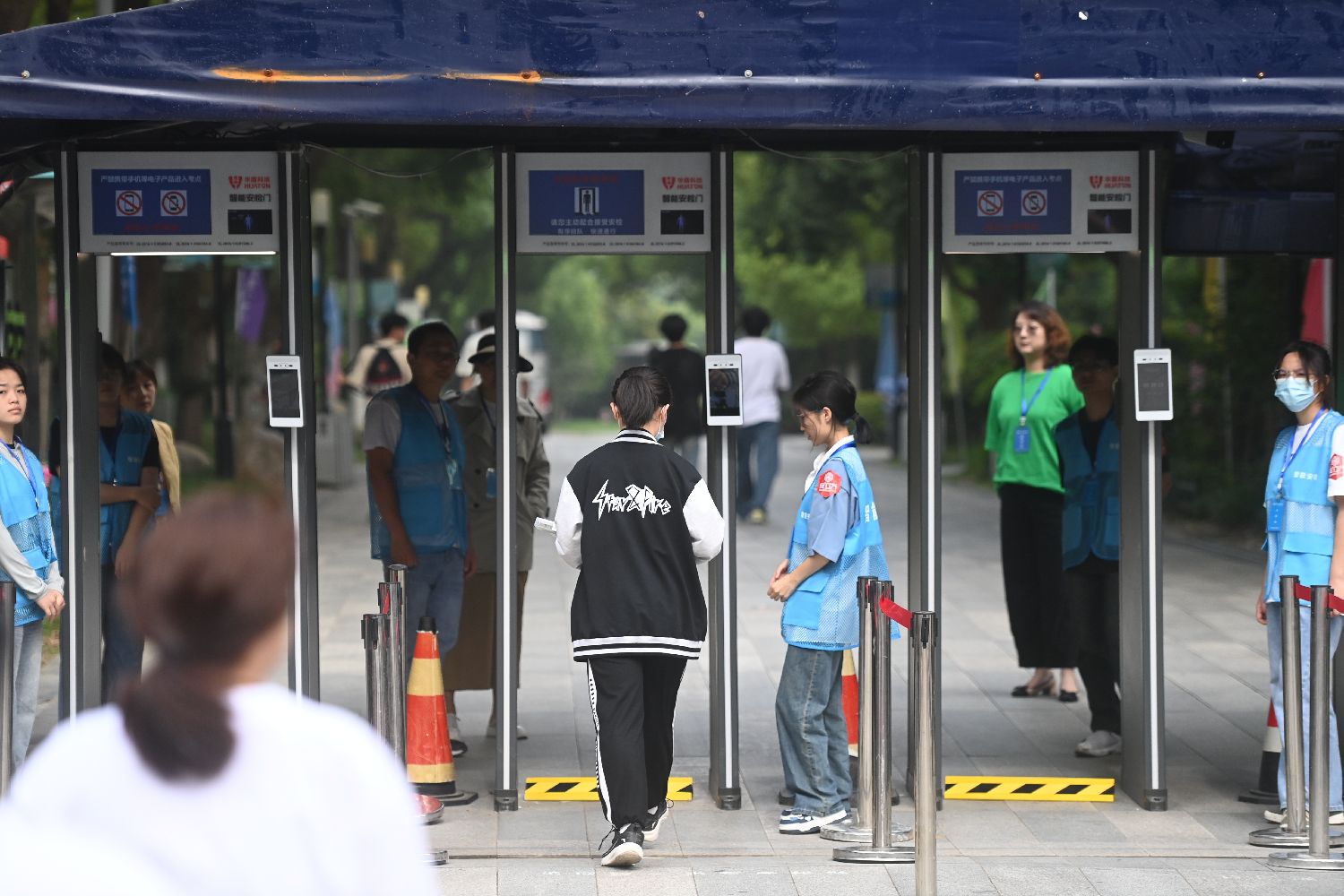 6月7日,中国人民大学附属中学朝阳学校考点,考生准备进入考场。中国日报网