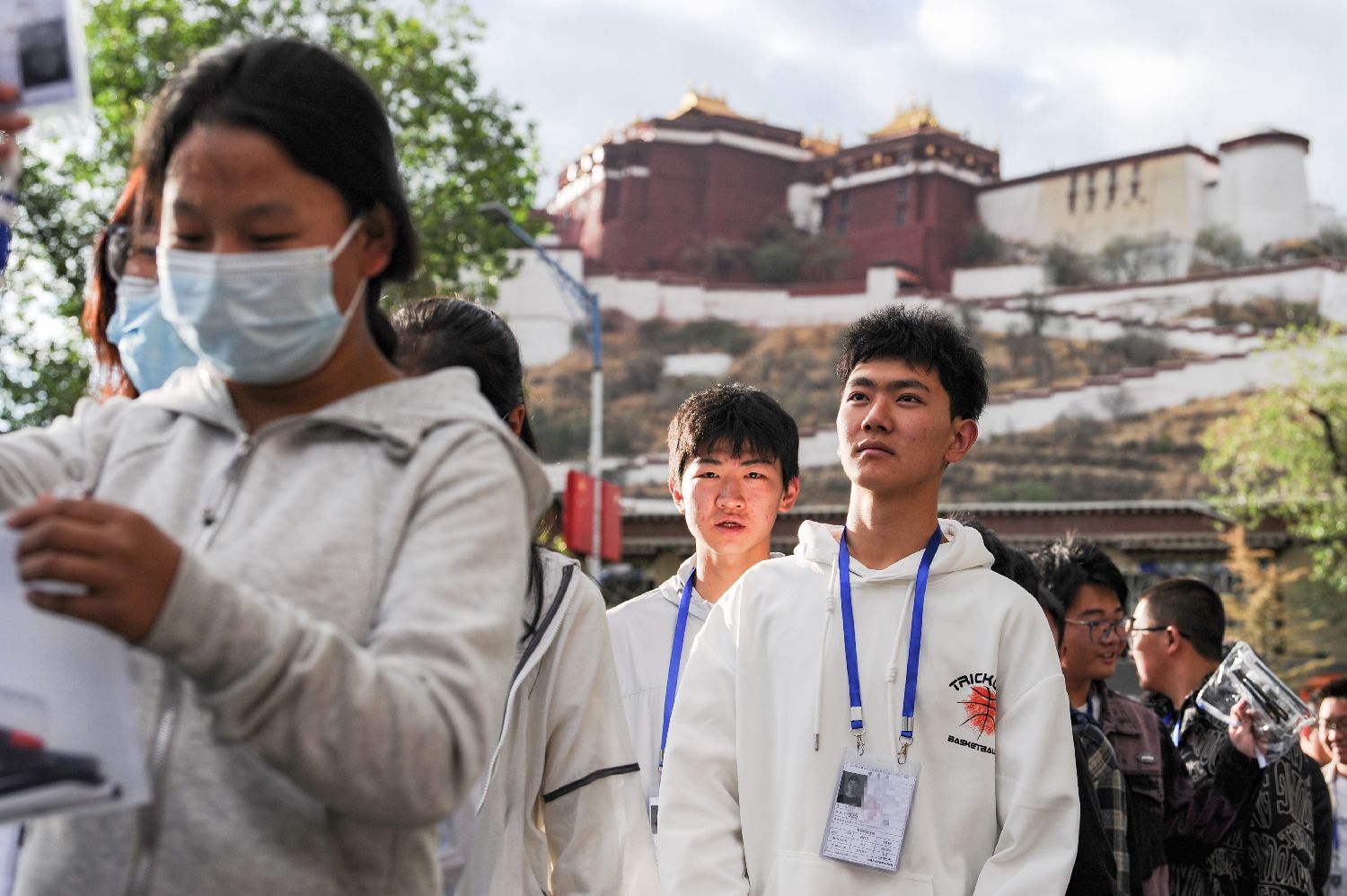 6月7日,西藏拉萨中学考点,考生有序进入考场。中新社