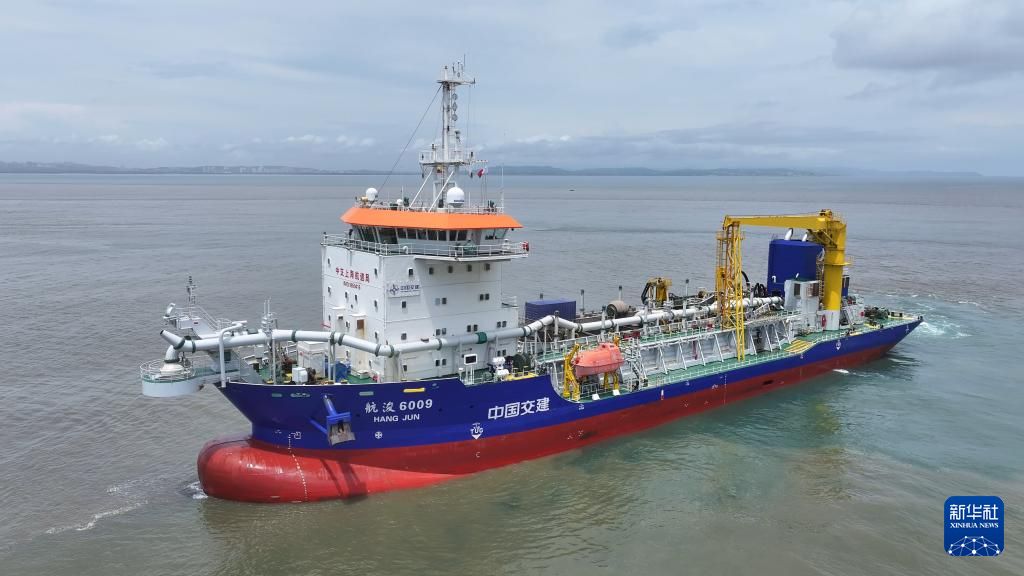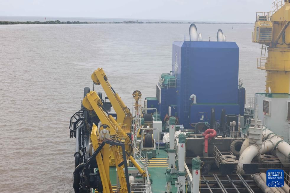 6月5日,中交上海航道局的“航浚6009”轮在哥伦比亚巴兰基亚港作业。中交上海航道局供图