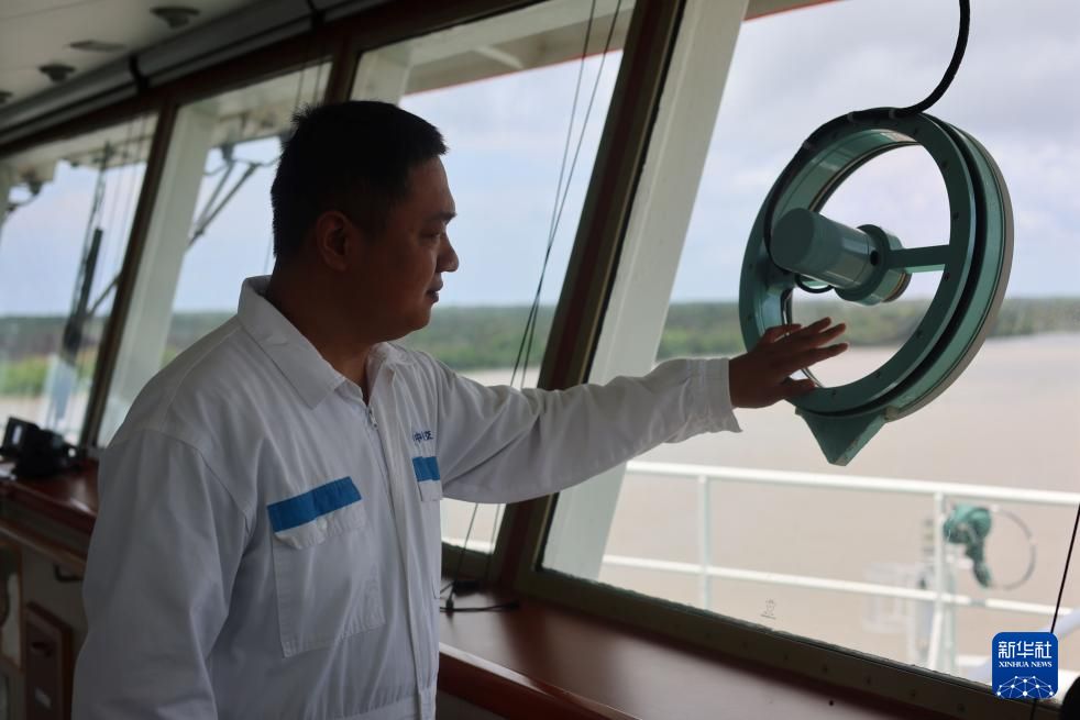 6月6日,在哥伦比亚巴兰基亚,中交上海航道局的“航浚6009”轮船长胡钊章在控制室工作。