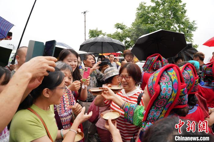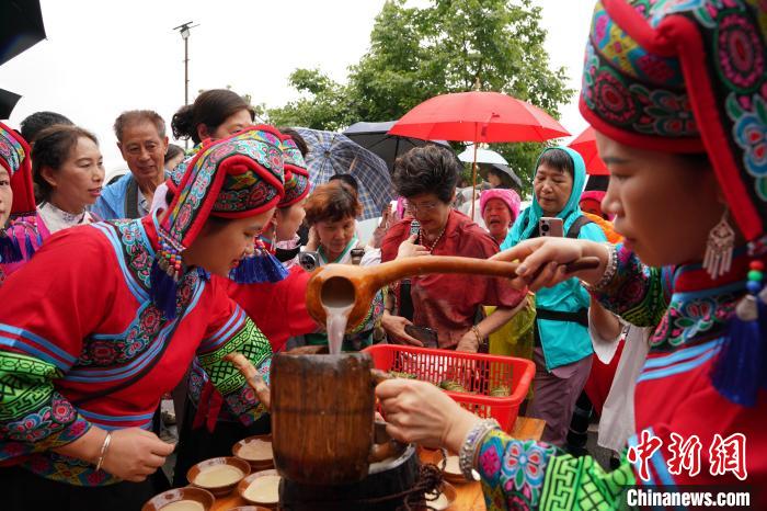 壮族姑娘敬献水酒迎宾。中新网