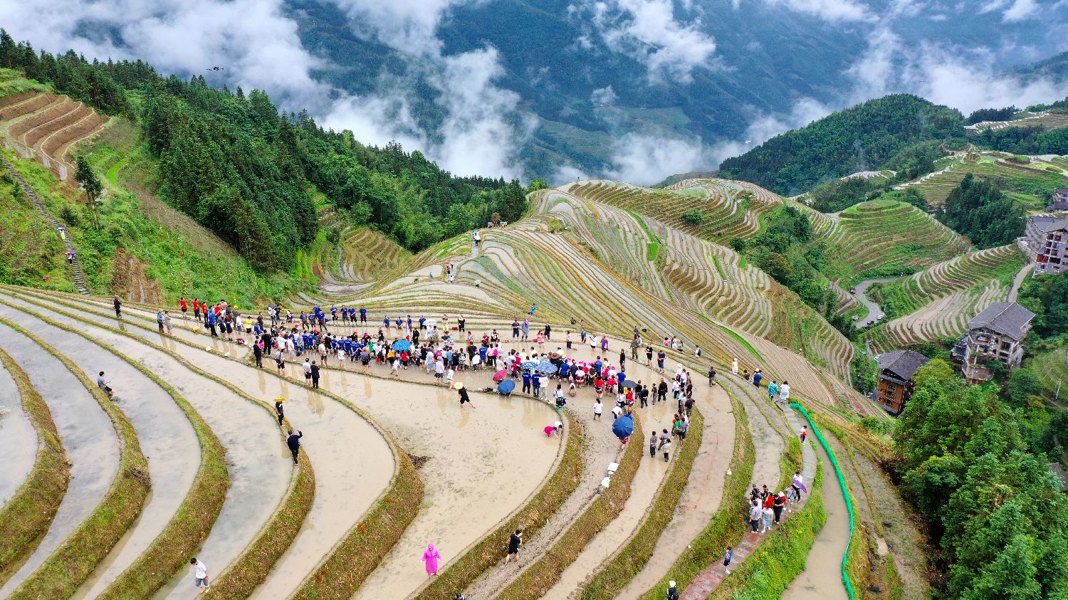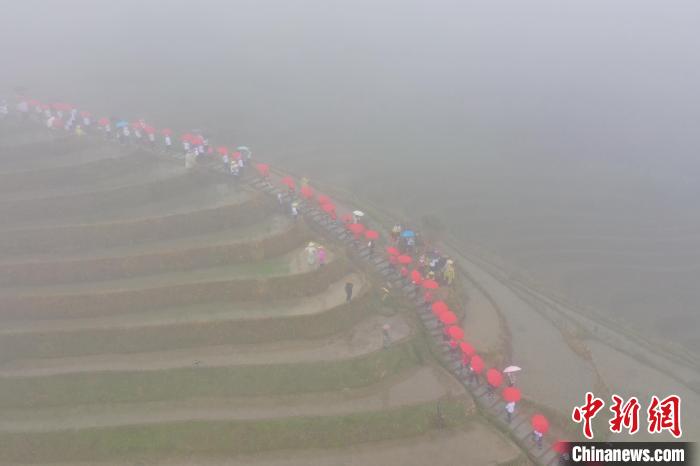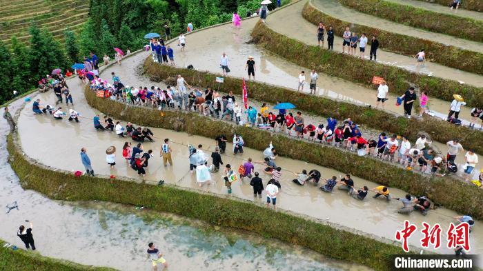 梯田拔河比赛。(无人机照片)中新网