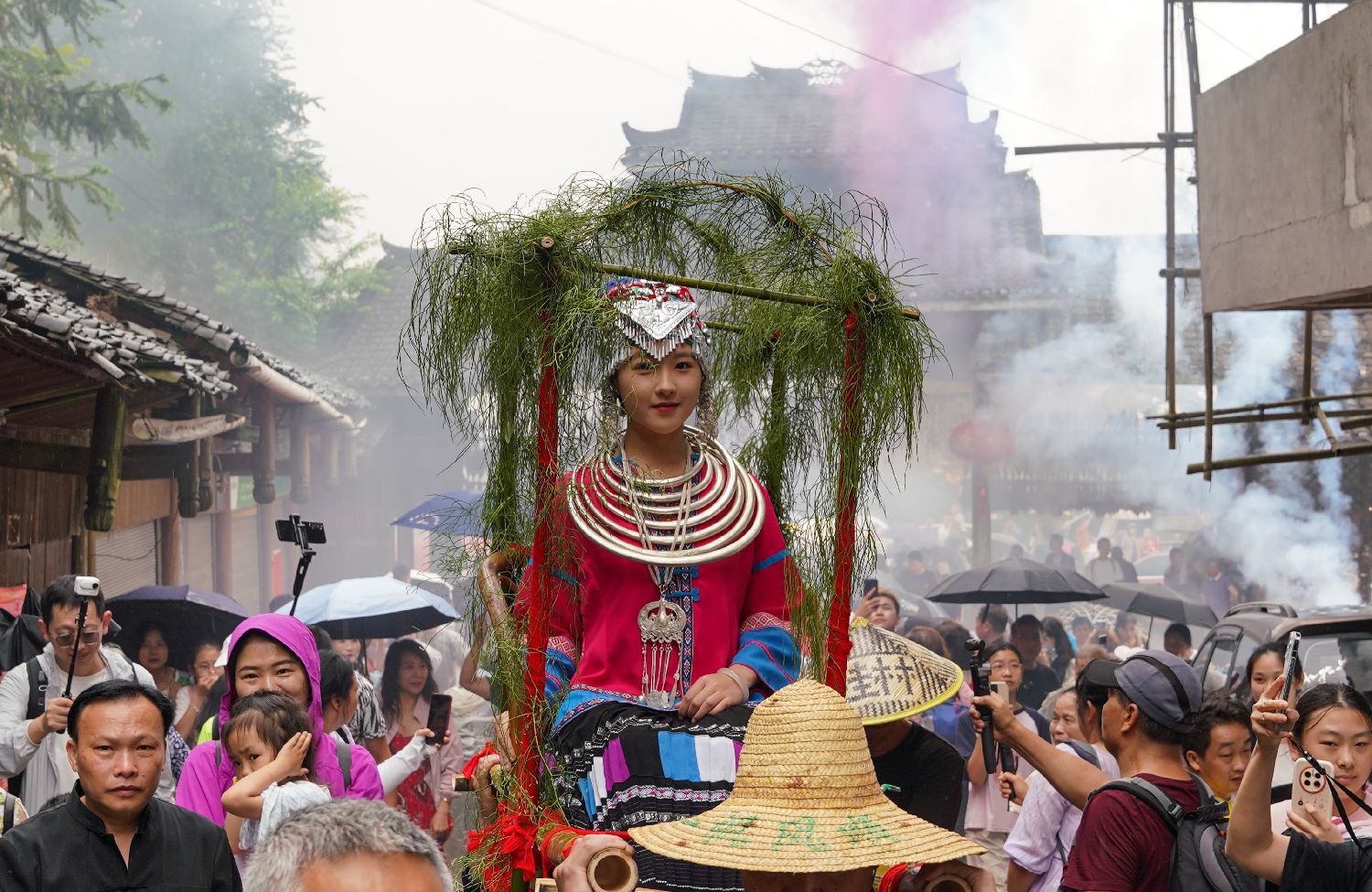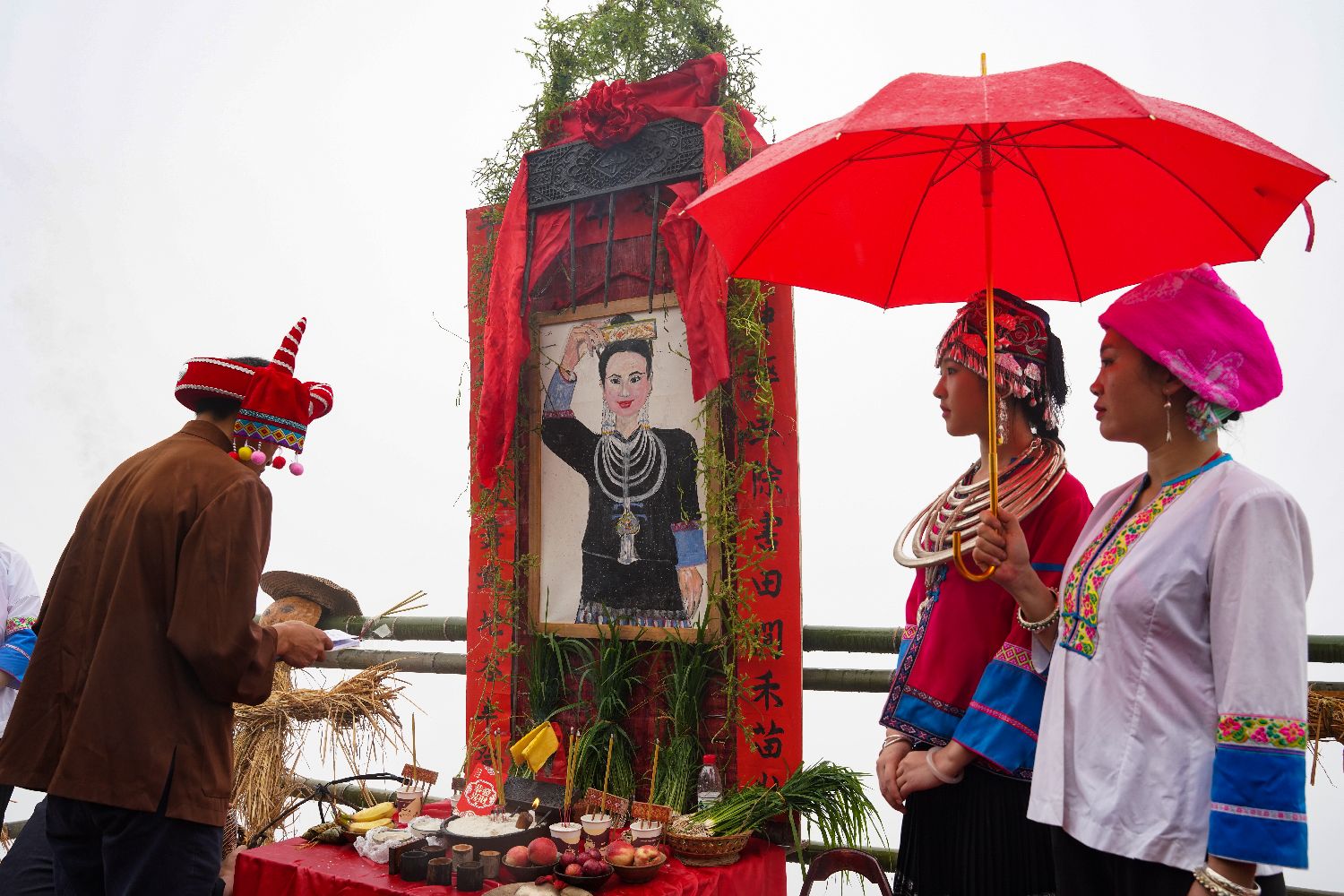 抬“秧母”供“神梳”活动。(无人机照片)中新网