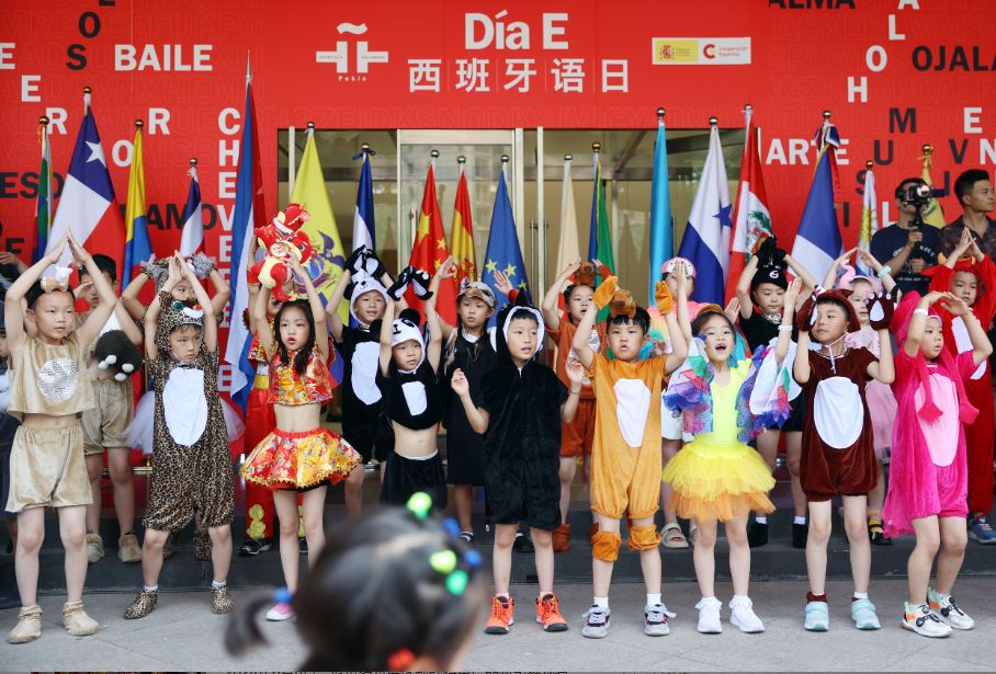 2024年6月8日,来自北京海淀外国语学校的学生用西语表演节目。 李久骏摄