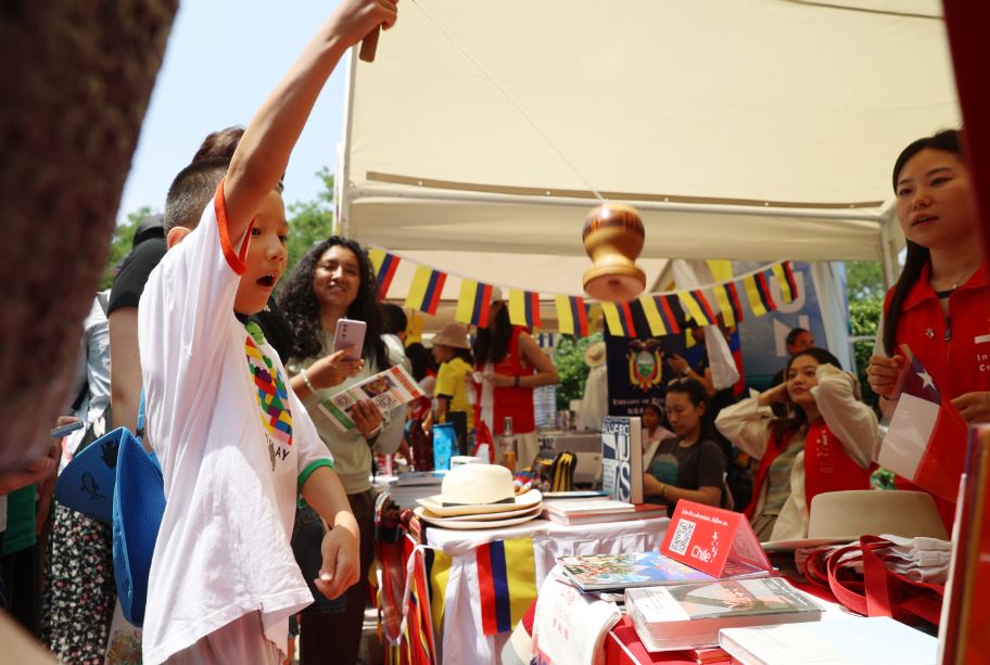 2024年6月8日,一名男孩在智利展区参与游戏。 李久骏摄