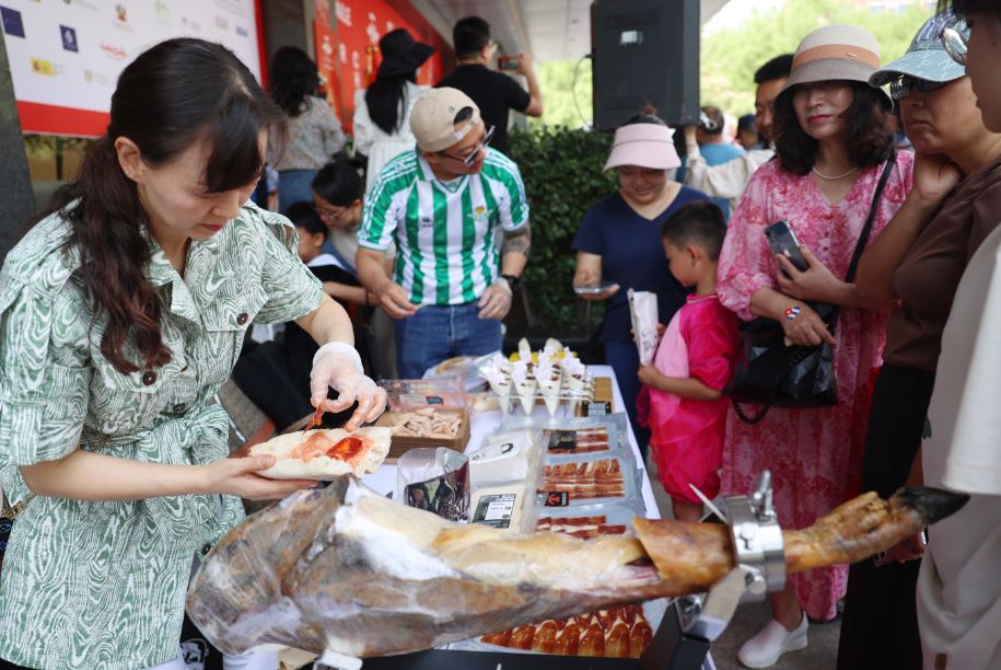 2024年6月8日,西班牙国宝级美食伊比利亚火腿面包吸引众多人排队。 李久骏摄