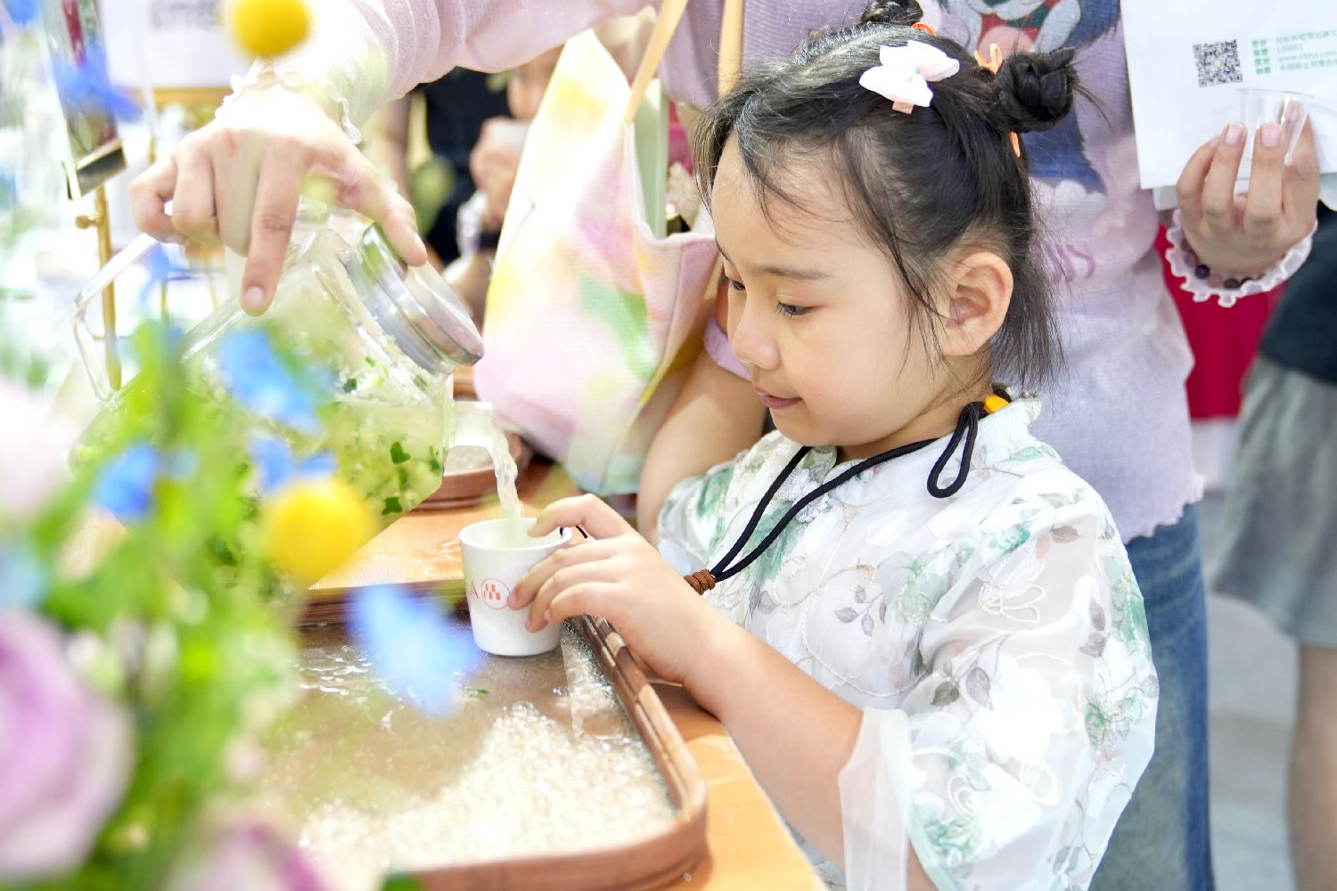 2024北京国际茶业展于6月7日至10日在北京举办。图为6月9日,小朋友品尝花茶。中新社