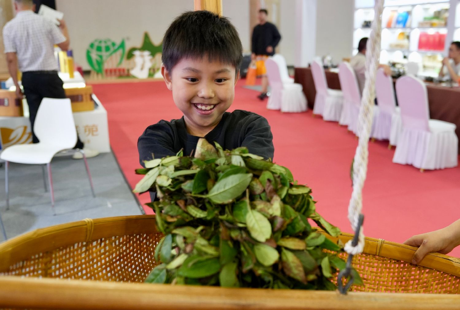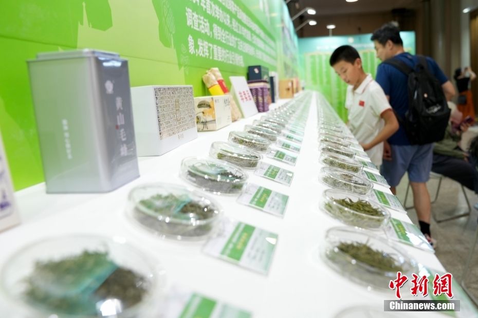 6月9日,展陈的不同种类的绿茶吸引小朋友观看。中新网