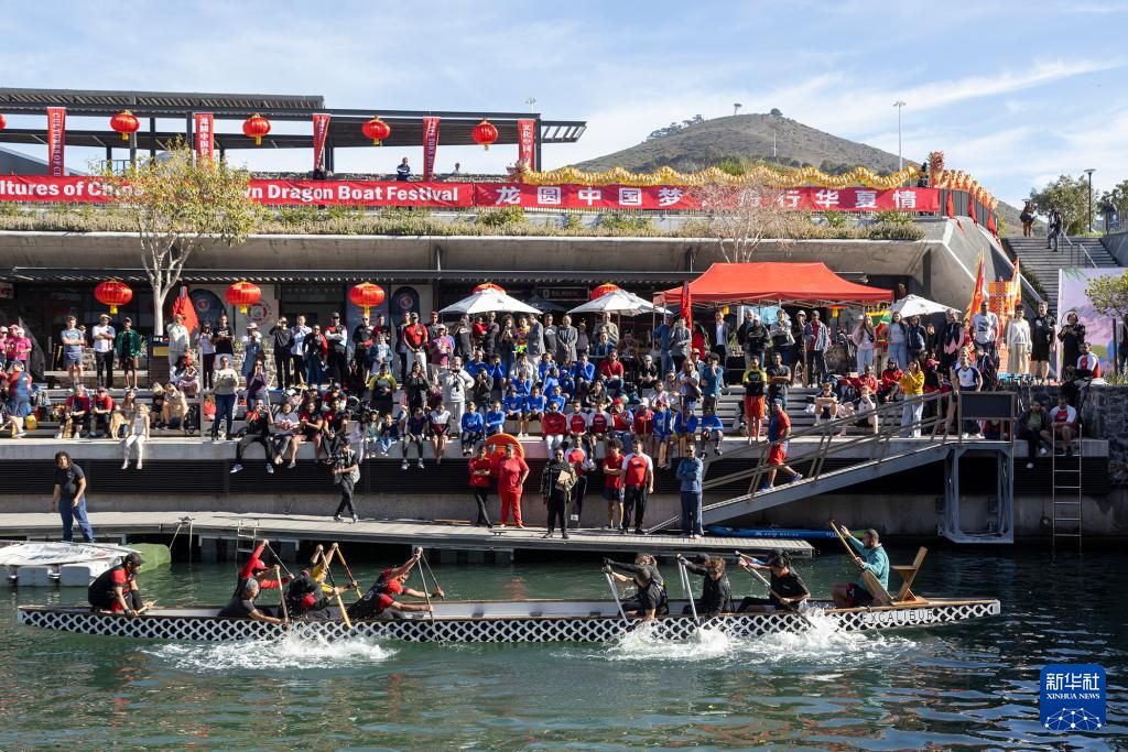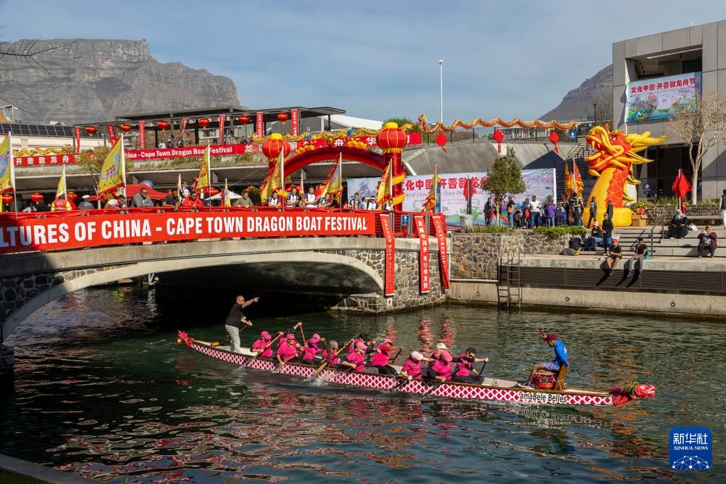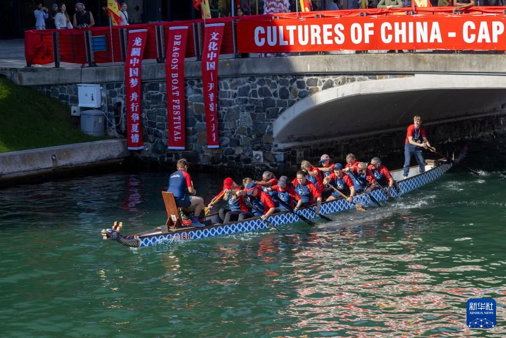 6月8日,在南非开普敦,龙舟赛正如火如荼的进行中。新华社