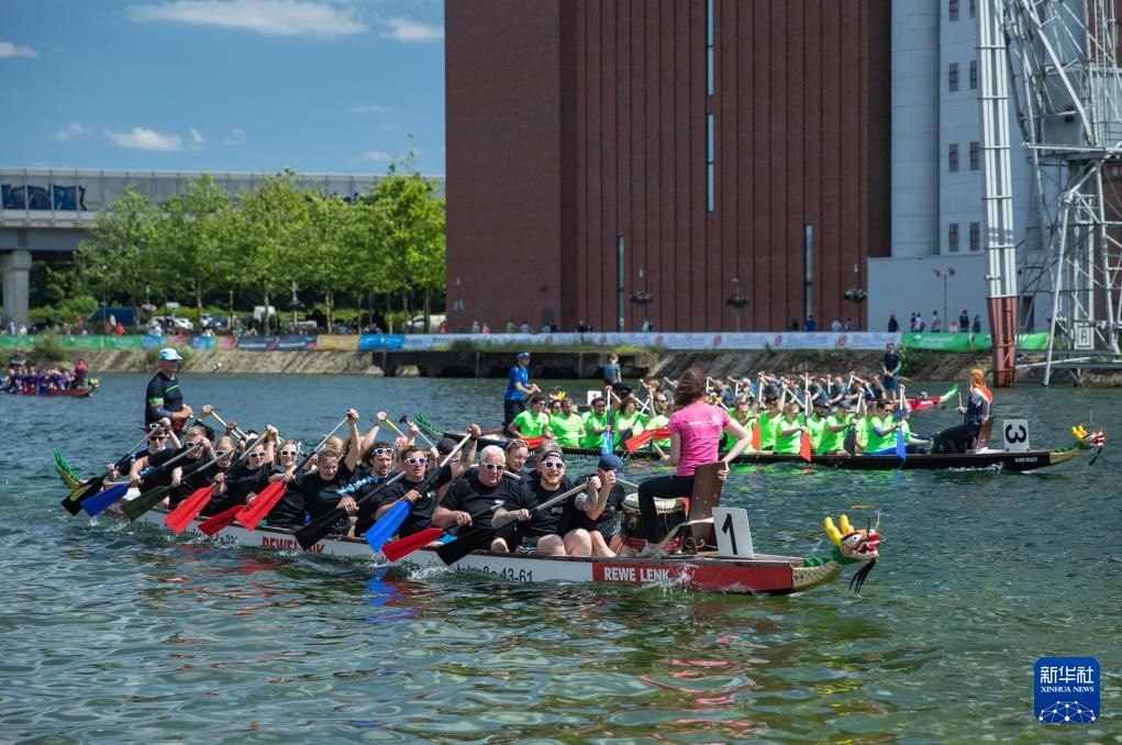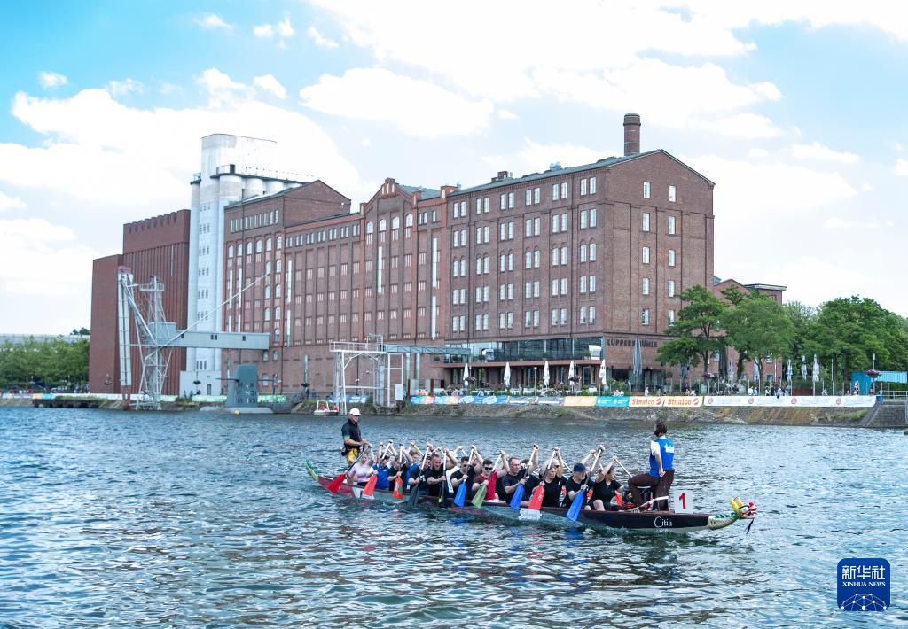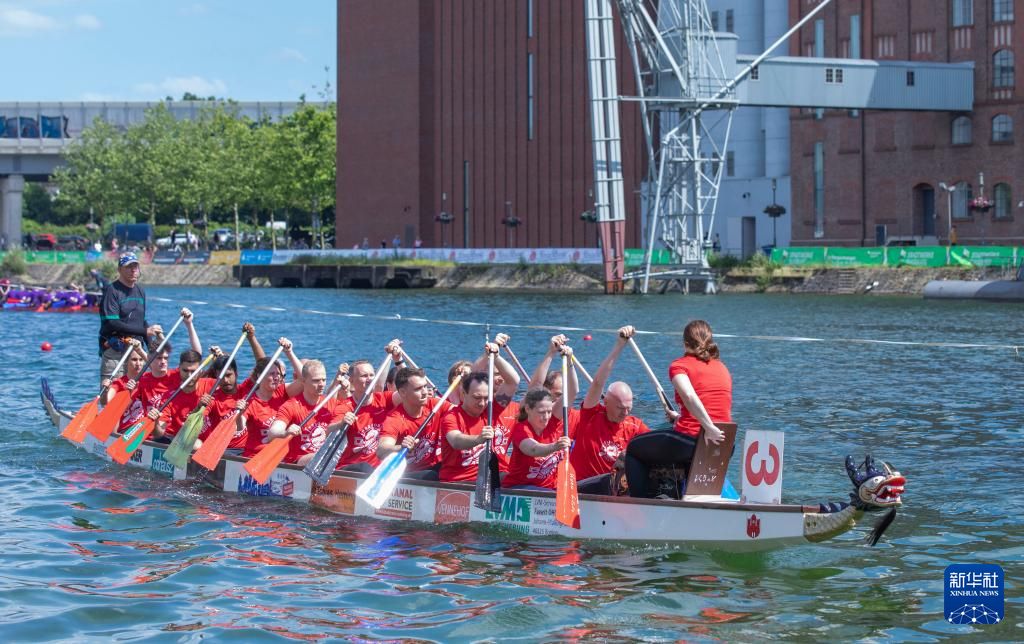 6月8日,选手们在德国杜伊斯堡参加2024趣味龙舟赛。新华社