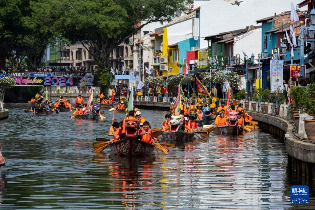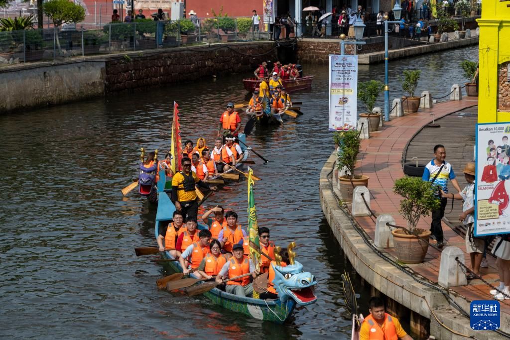 6月8日,人们在马来西亚马六甲市参加游龙舟活动。新华社