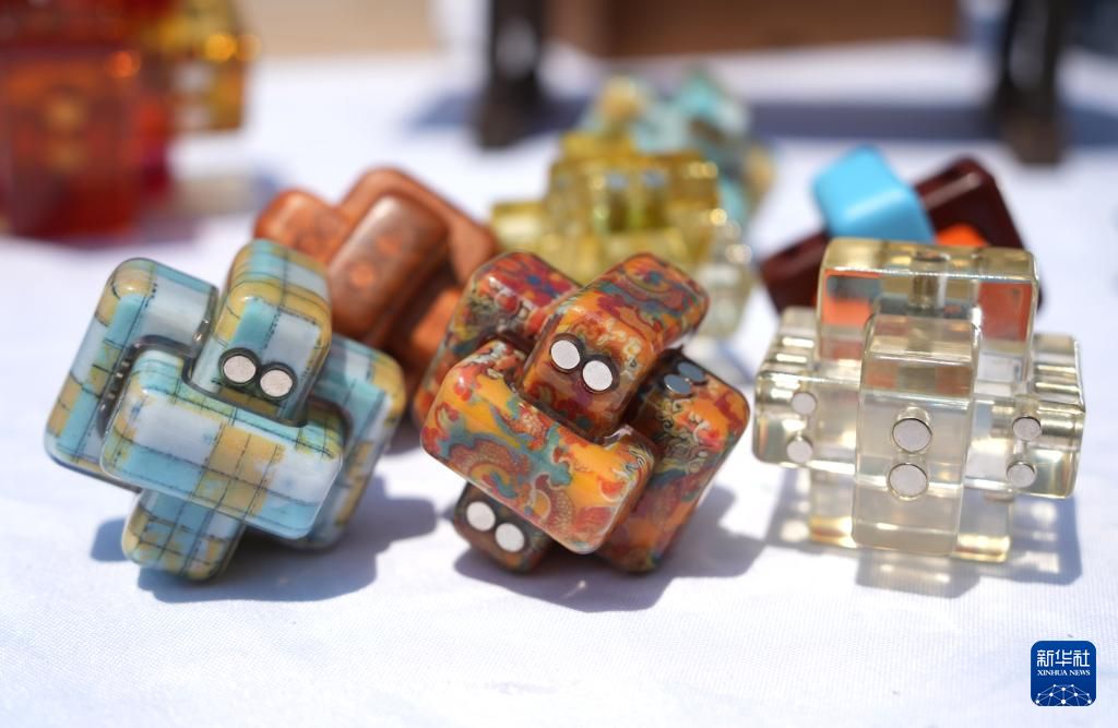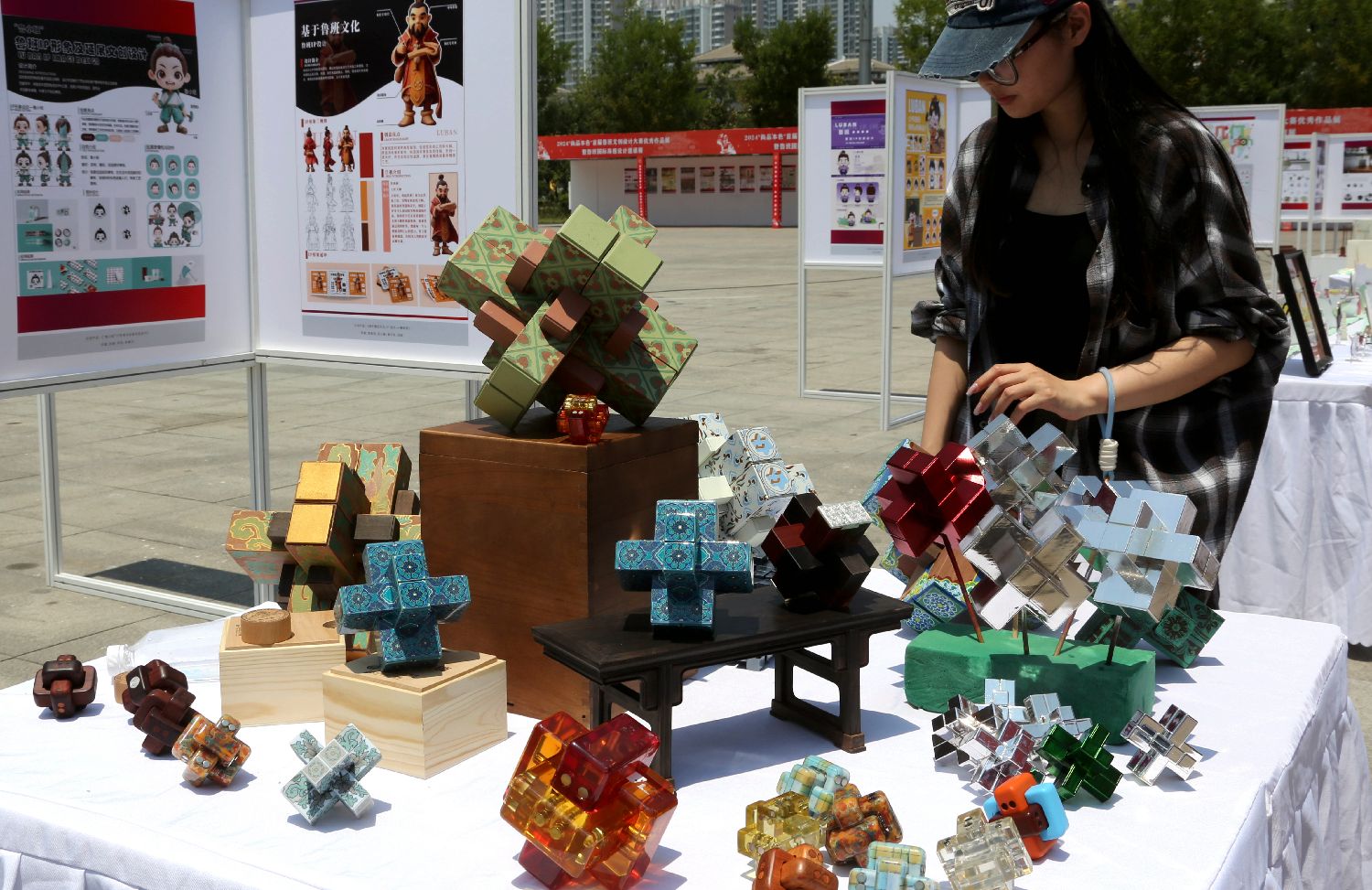 6月11日,活动现场展示了众多鲁班锁优秀文创作品,吸引参观者驻足了解。中新社