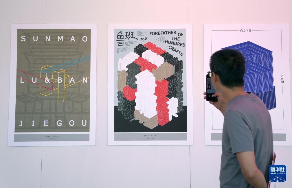 6月11日,在首届鲁班文创设计大赛优秀作品展上,观众在观看平面设计类作品。新华社