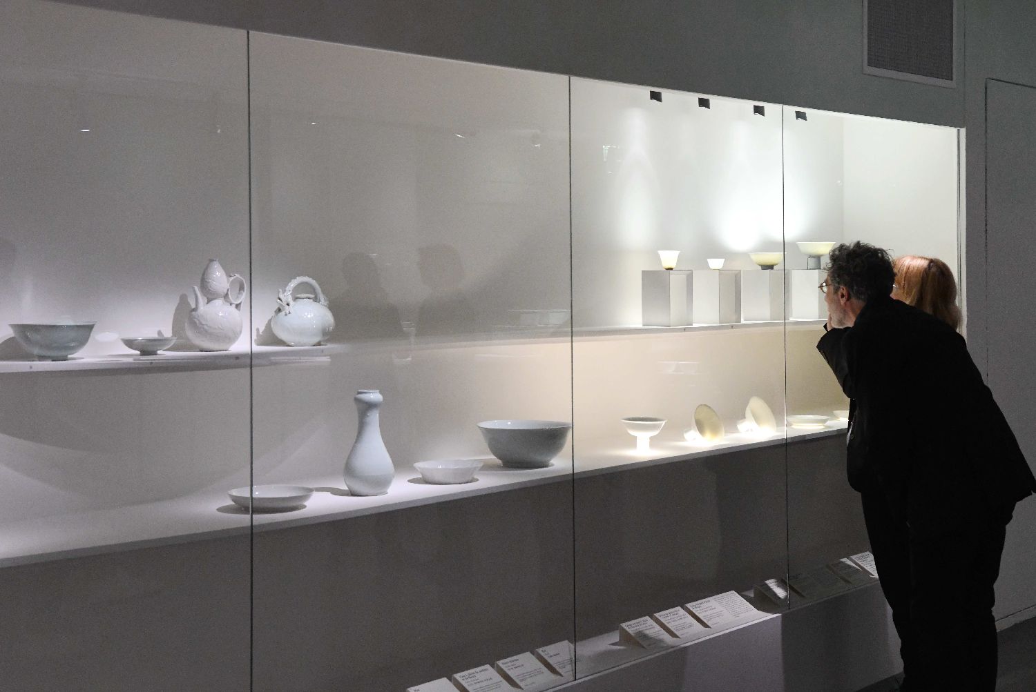 参观者在仔细观看展出的中国瓷器精品。中新社