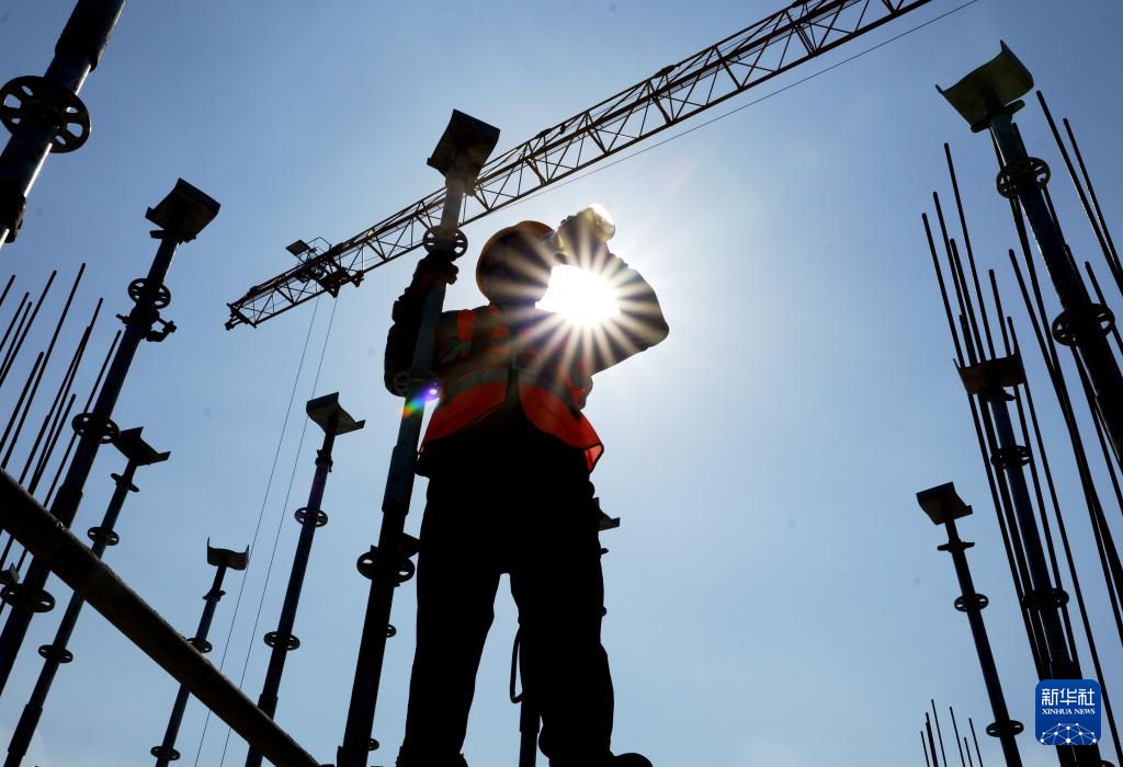6月17日,在位于河南郑州的上海龙华医院河南医院项目工地,中建三局工人在喝绿豆汤解暑。新华社