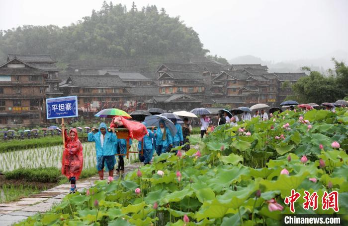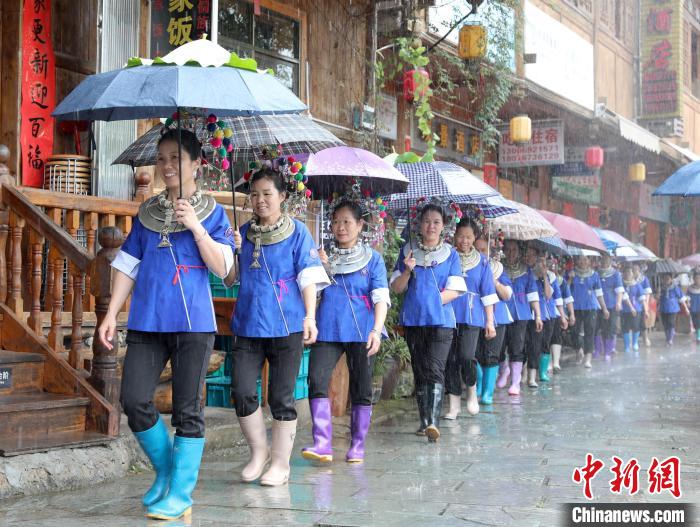 6月18日,各村寨民众冒雨参加庆祝活动。中新网