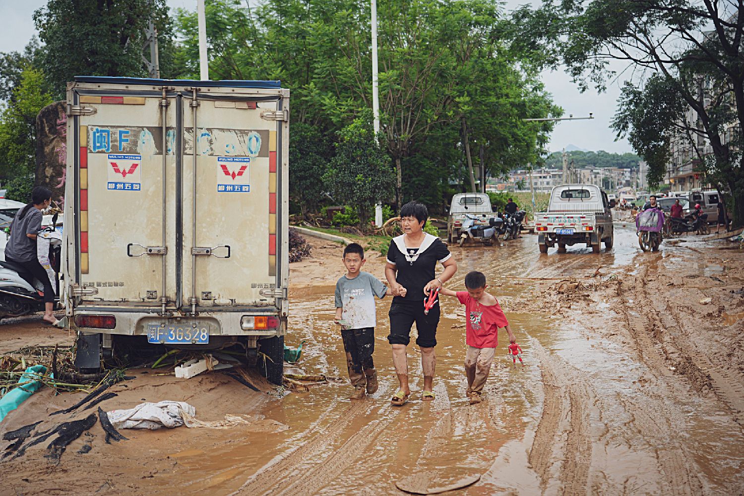 6月17日,水退过后,福建省龙岩市武平县岩前镇村庄一片狼藉。中新社/武平县融媒体中心供图