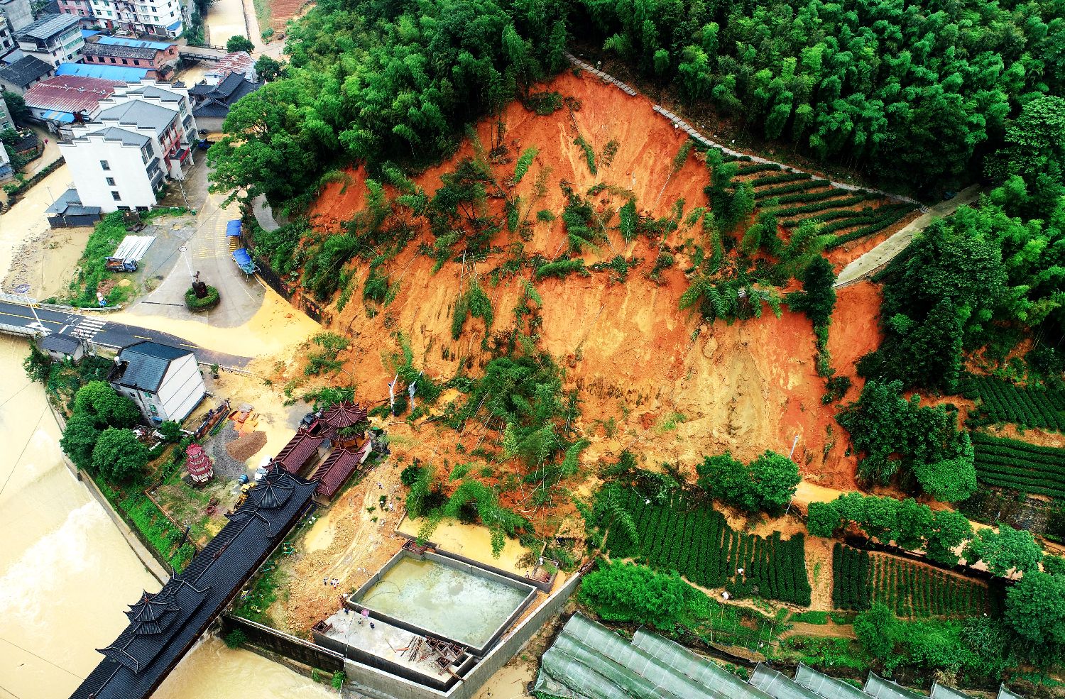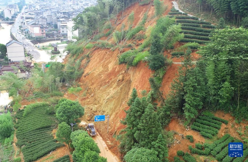 6月17日,福建省龙岩市武平县岩前镇暴雨造成山体滑坡。中新社/武平县融媒体中心供图