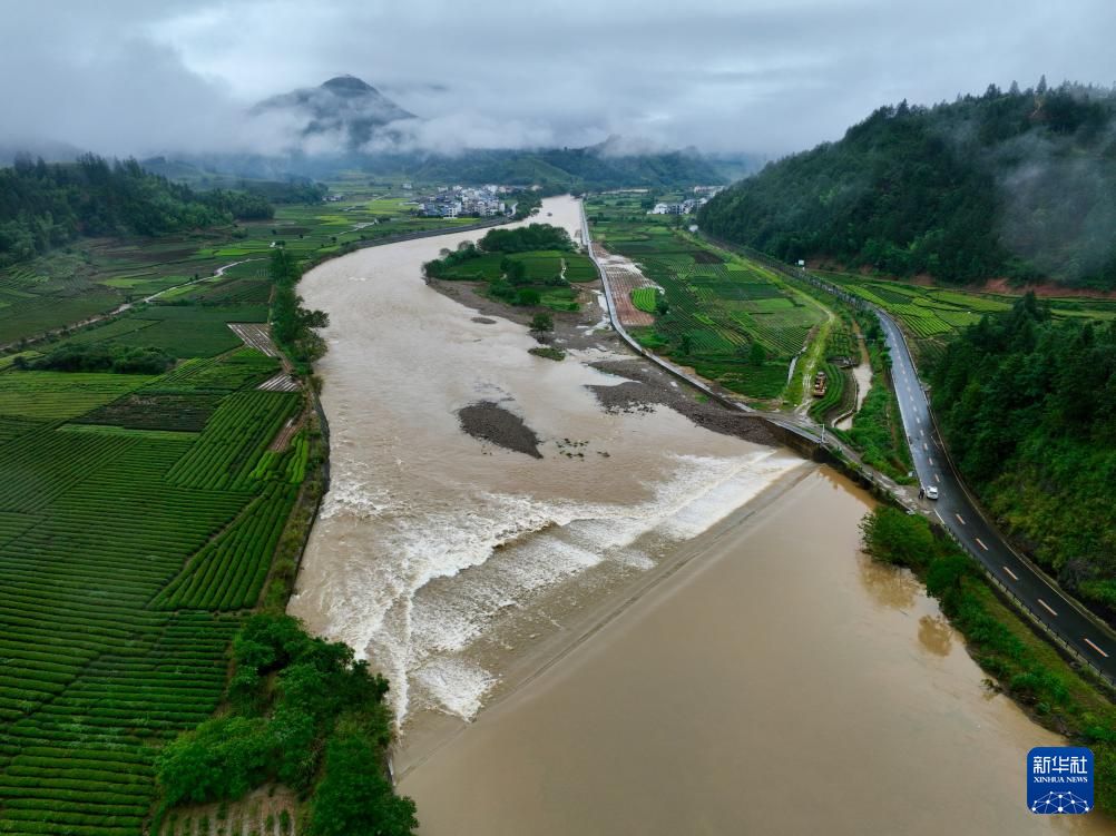 6月16日拍摄的福建南平武夷山市九曲溪上游洪水。新华社