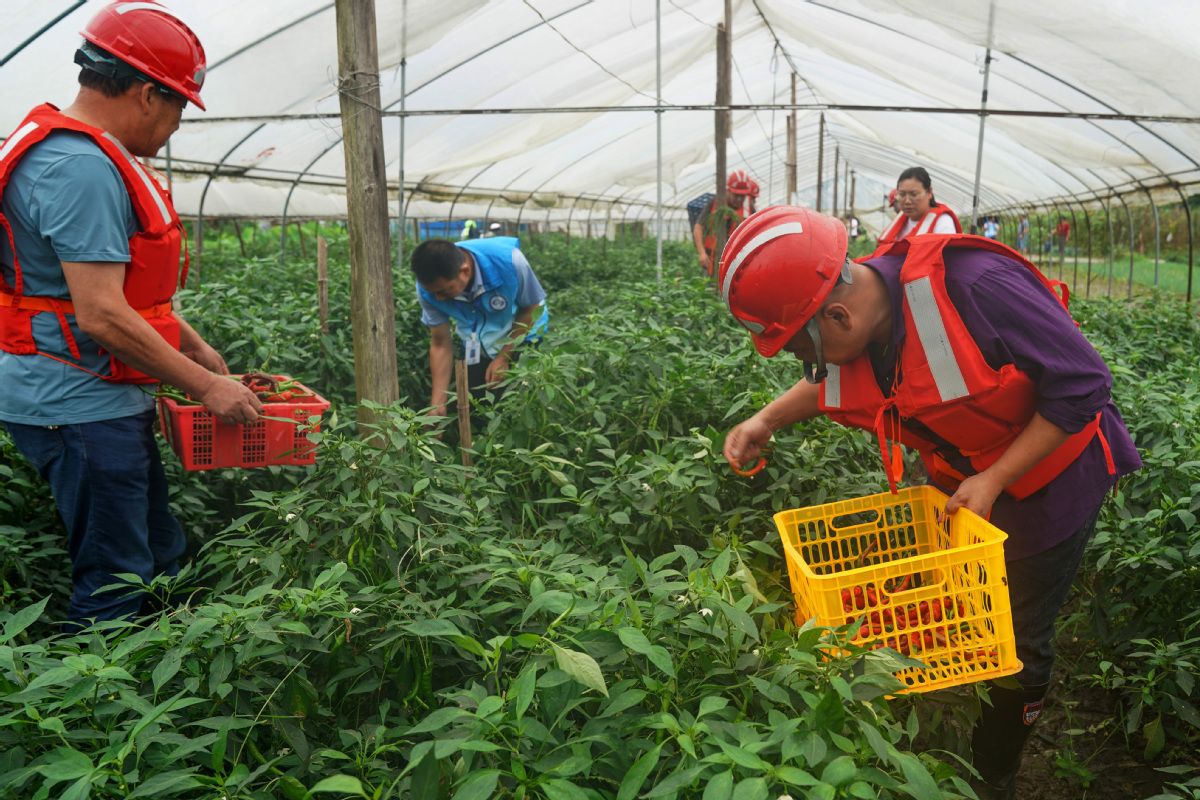 6月18日,武夷山市洪水刚退去,当地干部、志愿者利用雨停间歇,帮助菜农抢收蔬菜,把损失降到最低程度。中国日报网