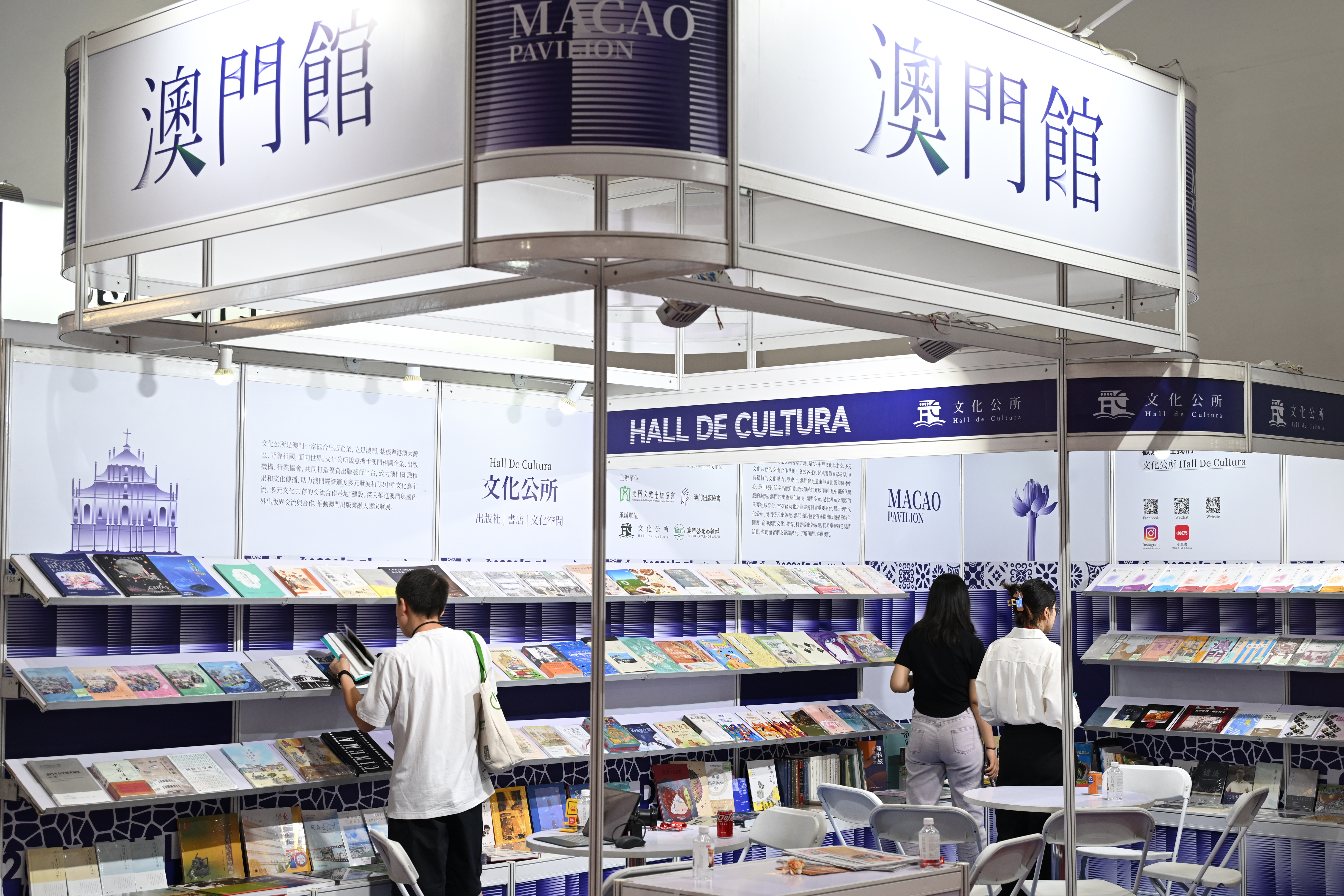 6月19日,观众在澳门馆选购图书。中新社
