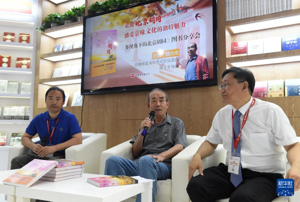 6月19日,在北京展区,旅游教育出版社举行《多视角下的北京胡同》图书分享会,该书主编魏光奇(中)等嘉宾向读者介绍北京胡同的独特魅力。新华社