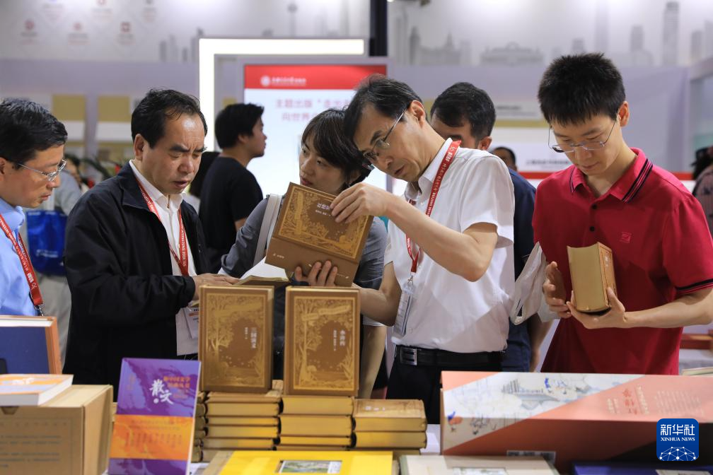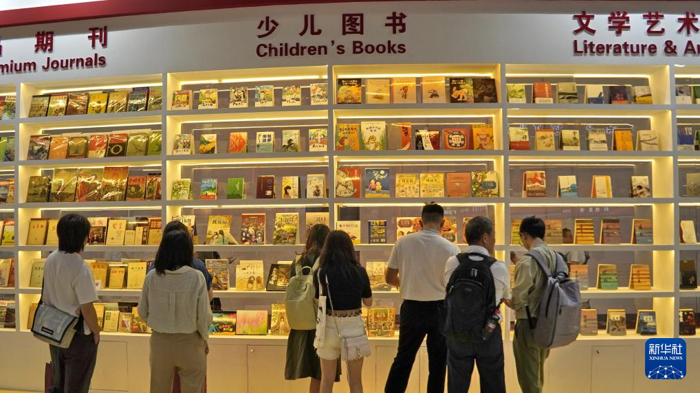 6月19日,观众在参观中国出版商展出的图书。新华社