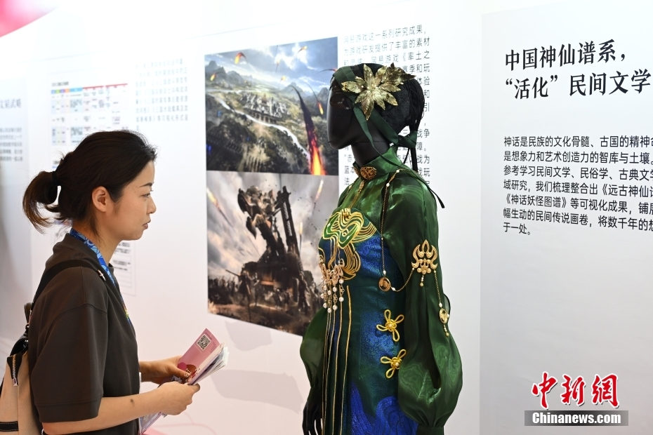 6月19日,参观者在观看传统戏曲文化与现代工艺结合的游戏主题服饰。中新网