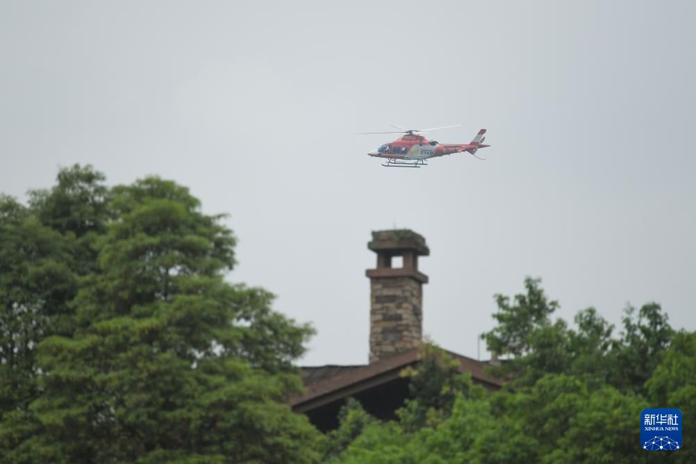 6月20日,在成都都江堰市青城山起降点拍摄的即将降落的参与验证飞行的载人直升机。新华社