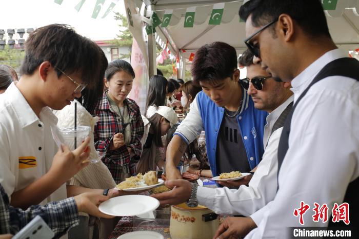 6月23日,巴基斯坦留学生在国际文化节现场为同学们制作美食。中新网