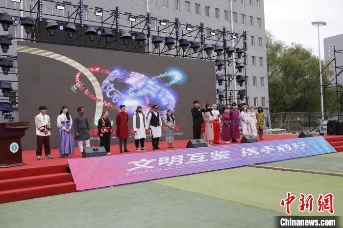 6月23日,留学生代表上台展示本国传统服装。中新网