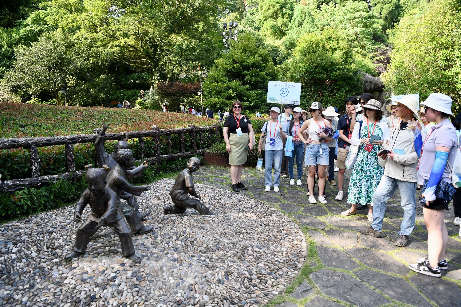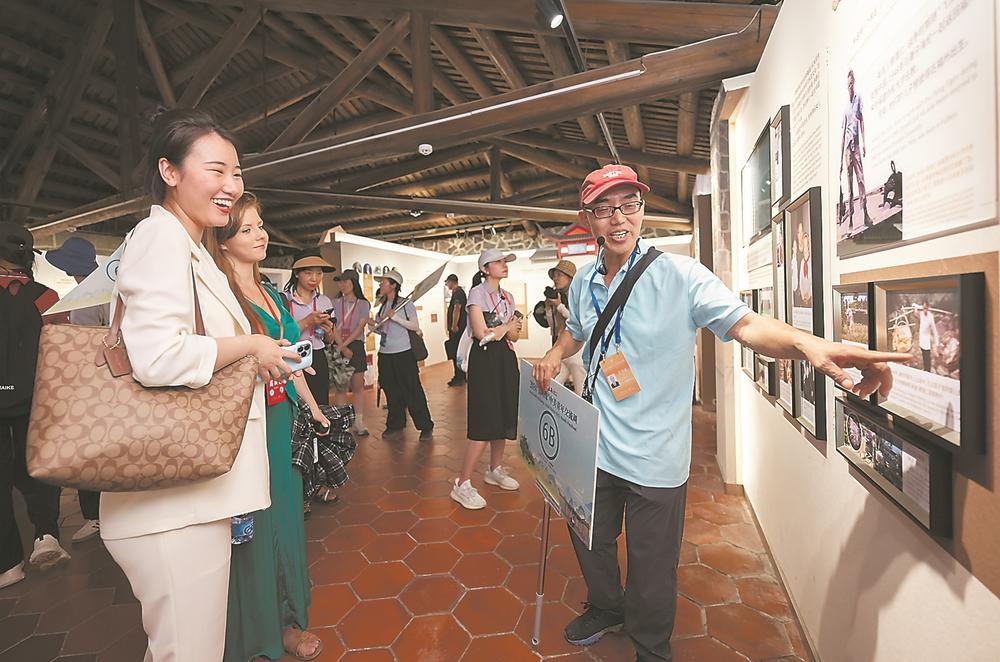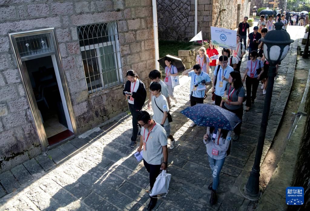 24日,中美青年在福州鼓岭万国公益社参观。新华社