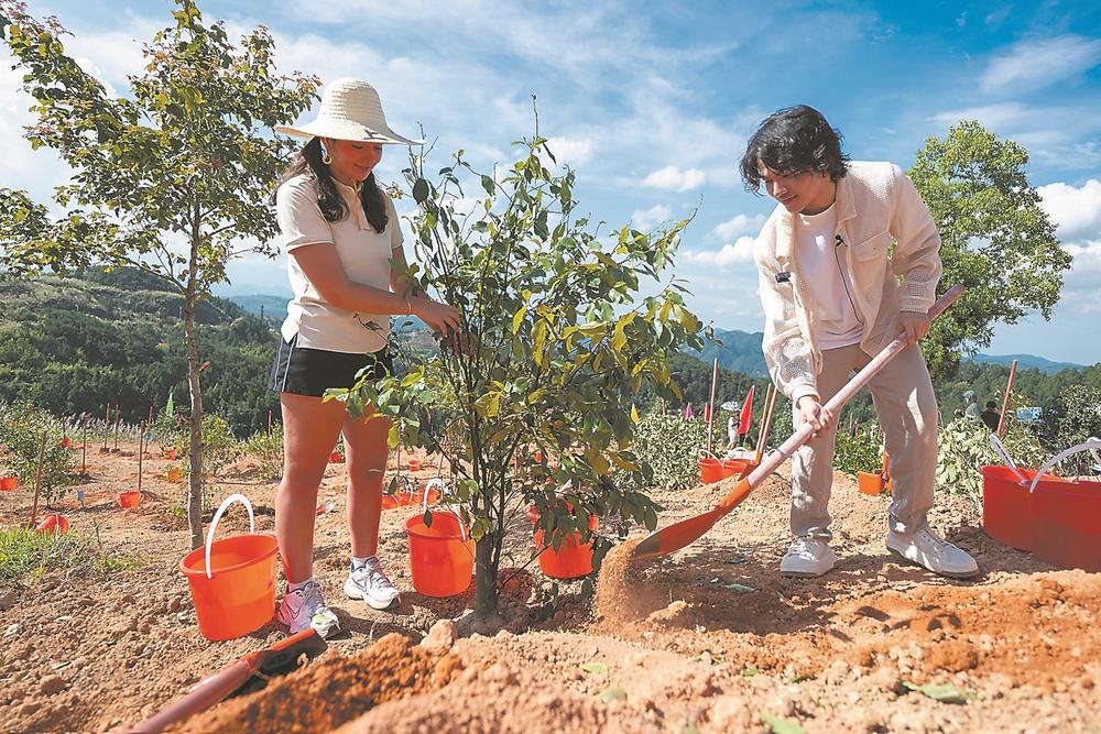 24日,参加2024“鼓岭缘”中美青年交流周的嘉宾共植友谊树。新华社