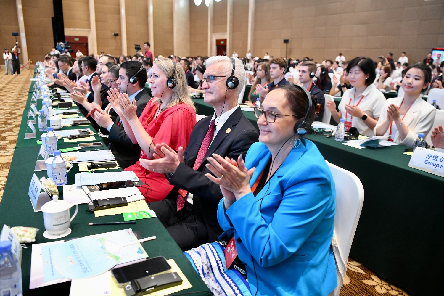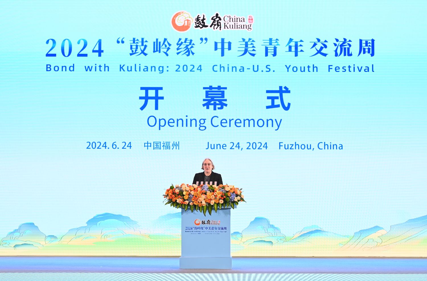 24日,2024“鼓岭缘”中美青年交流周在福建省福州市开幕。图为中美青年等参加开幕式。中新社